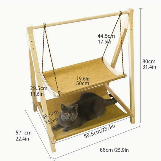 Cozy Dual-Level Wooden Cat Swing Bed - Raised Pet Hammock with Beige Fabric, Sturdy All-SeasonRegular price $58.99 USDRegular priceUnit price / per$0.00 USDSale price $58.99 USD