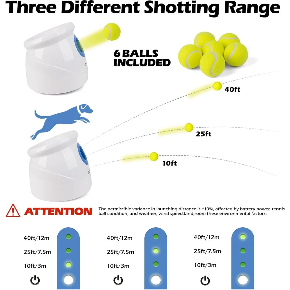 - Adjustable Distance: the distance of the ball launcher can be adjusted in 3 gears, approximately 10ft, 25ft or 40ft, one-key operation