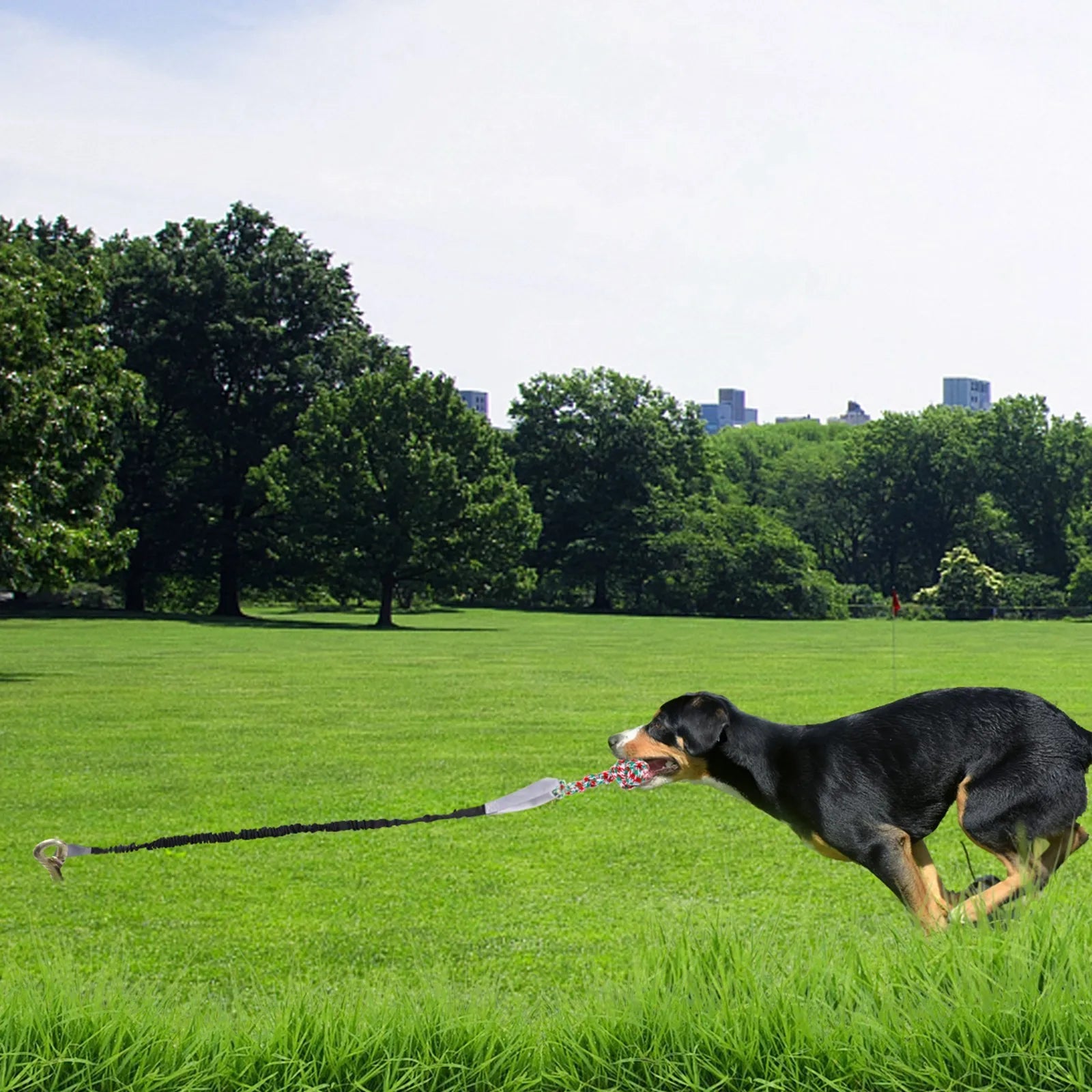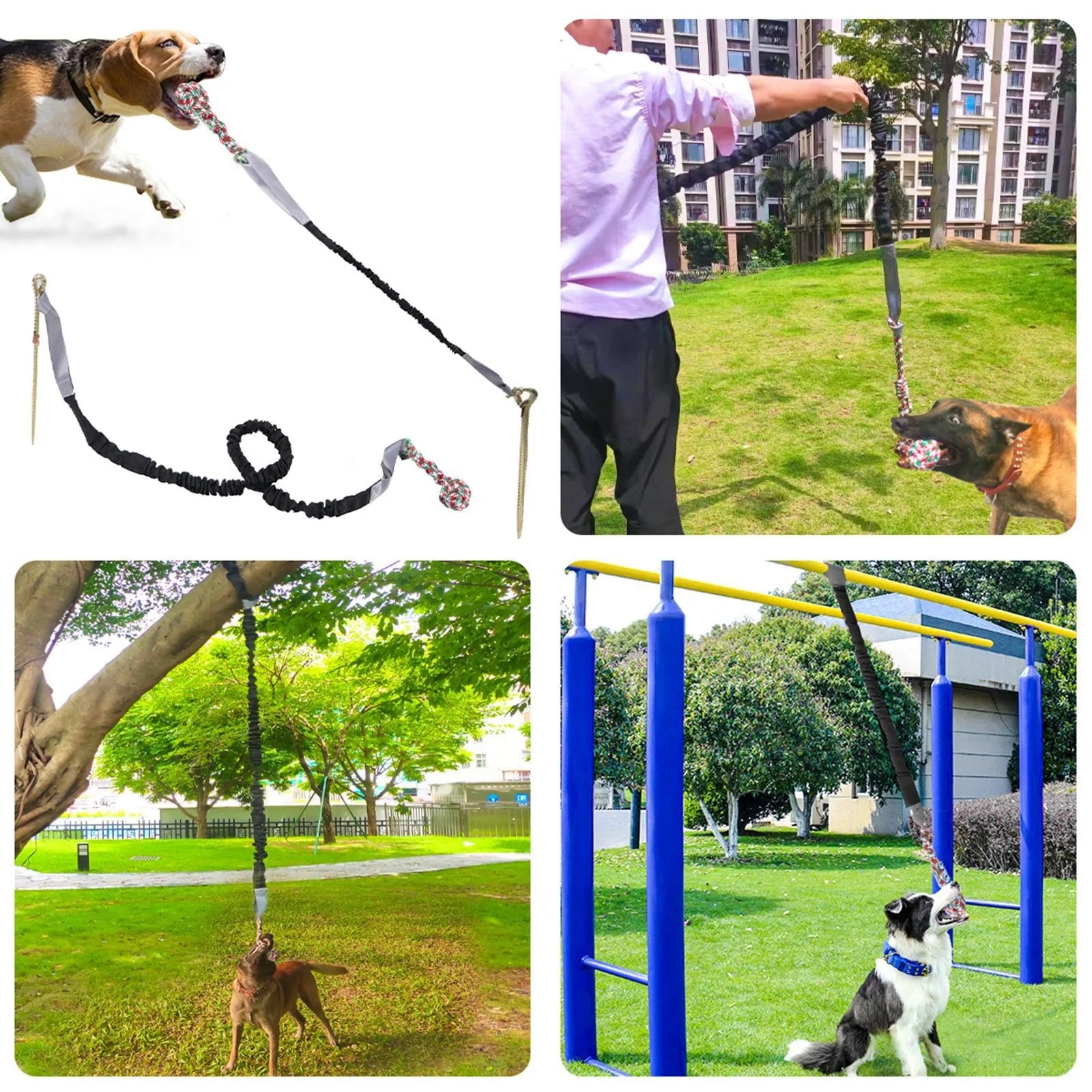 The tug-of-war toy fixes the stakes on the or the ground. This toy is an interesting tug-of-war toy. When the dog pulls and the , the super stability and elasticity of the ground makes it look like is caught and trying to escape. , stimulate the dog's desire to play games. dog fun.