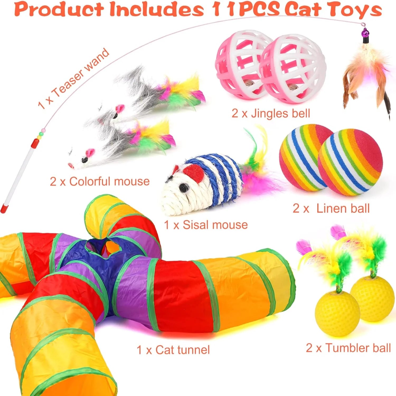 2. Keep your house cats entertained for hours with our unique and versatile Cat Tunnel Set. With 4 entrances and 11 catnip toys included, this tunnel provides endless fun and exercise for your pets.