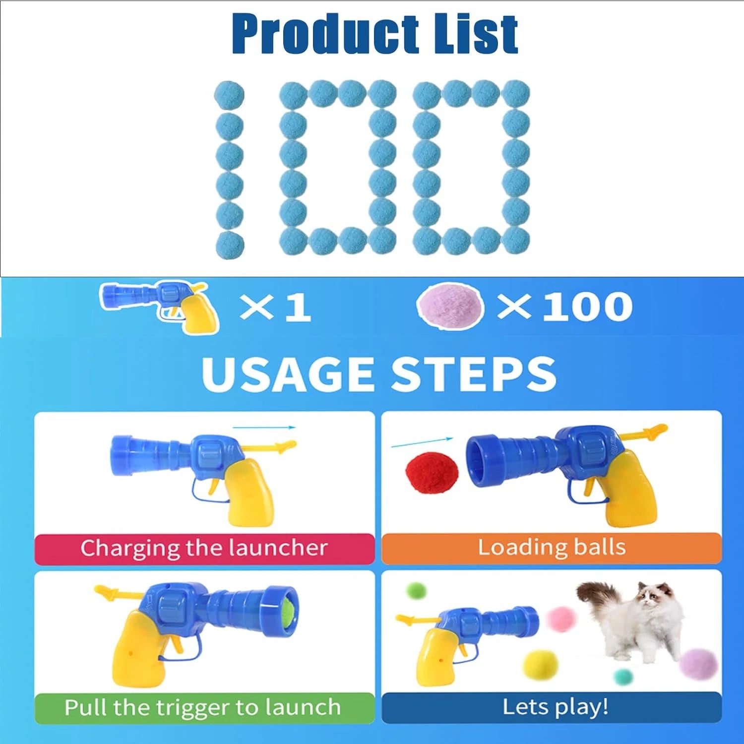 Exciting and Interactive High-energy Cat Toy Launcher - Engaging Training Aid with 100Pcs Pom Pom Balls for Stimulating Cat Exer