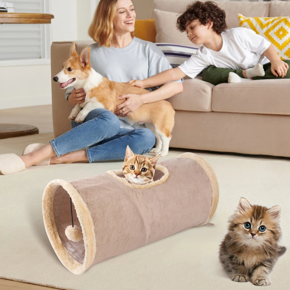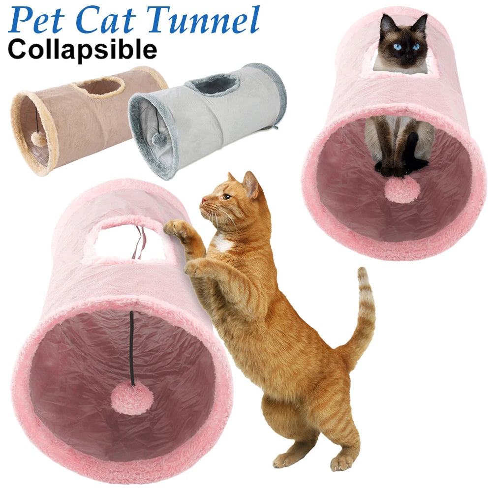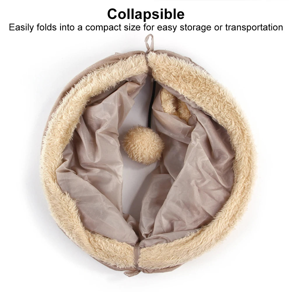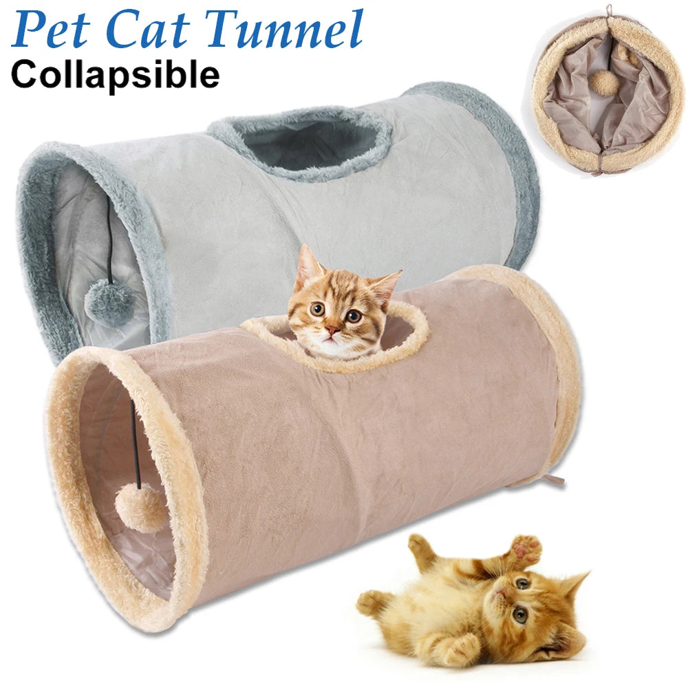 Cat Tunnel Collapsible Plush Channel with Play Ball Pet Indoor Sports Hiding Training Interactive Game for Indoor Puppy Supplies