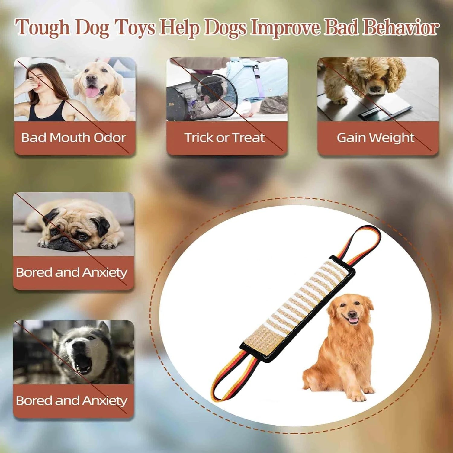 Interactive and durable training toy for dogs, perfect for small, medium, and large breeds. Made from sturdy jute material with