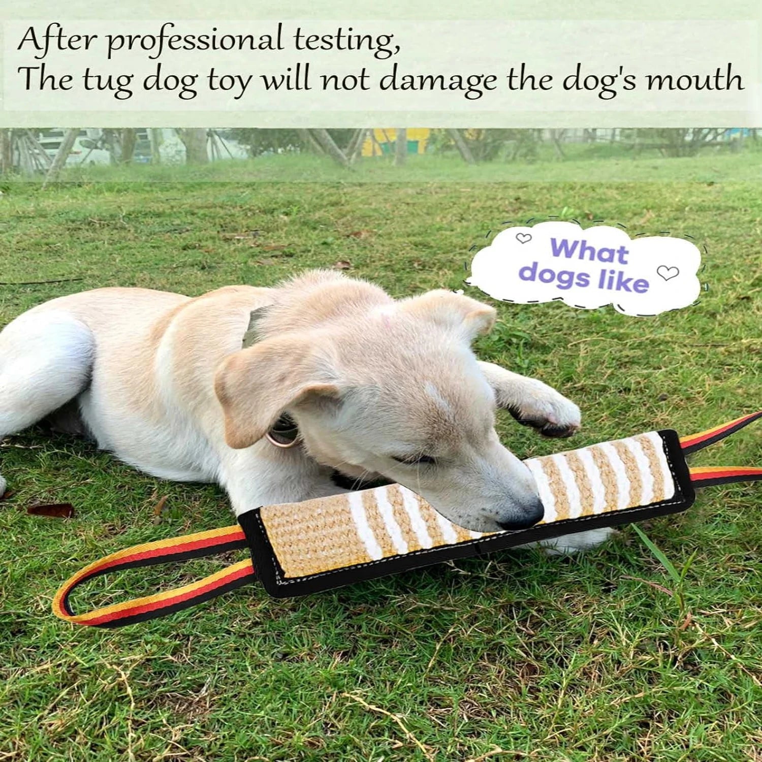 2. Give your furry friend the ultimate playtime experience with this Interactive and Durable Training Toy for Dogs. Crafted from tough jute fabric and featuring two sturdy flag handles, this chew-resistant toy is an essential tool for puppy training and interactive play. Built to last, this toy is suitable for dogs of all breeds and sizes, making it a versatile addition to your pet's toy collection.