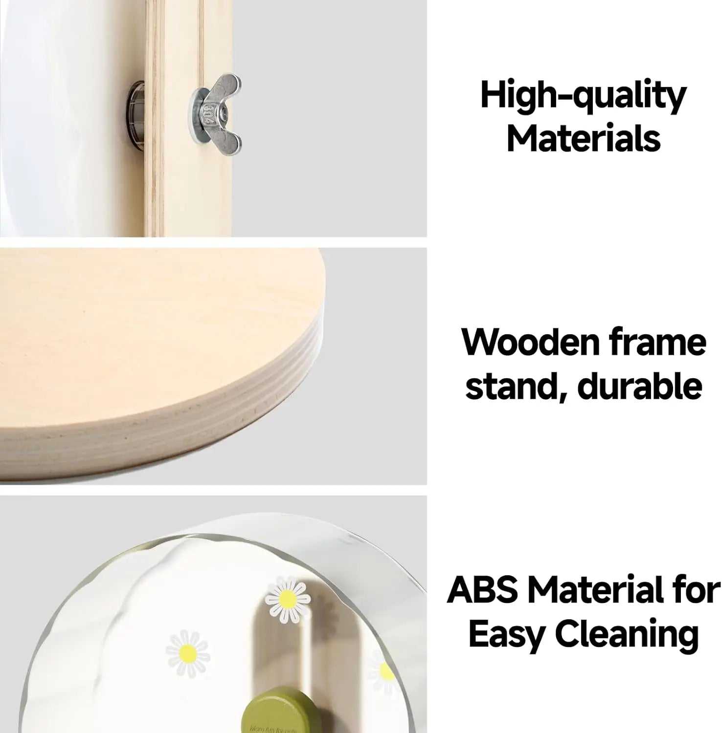 - **Silent Operation:** Enjoy a quieter environment with our hamster wheel's innovative silent design. The solid surface ensures your pet can run safely, while the noise-free mechanism keeps you undisturbed at night.