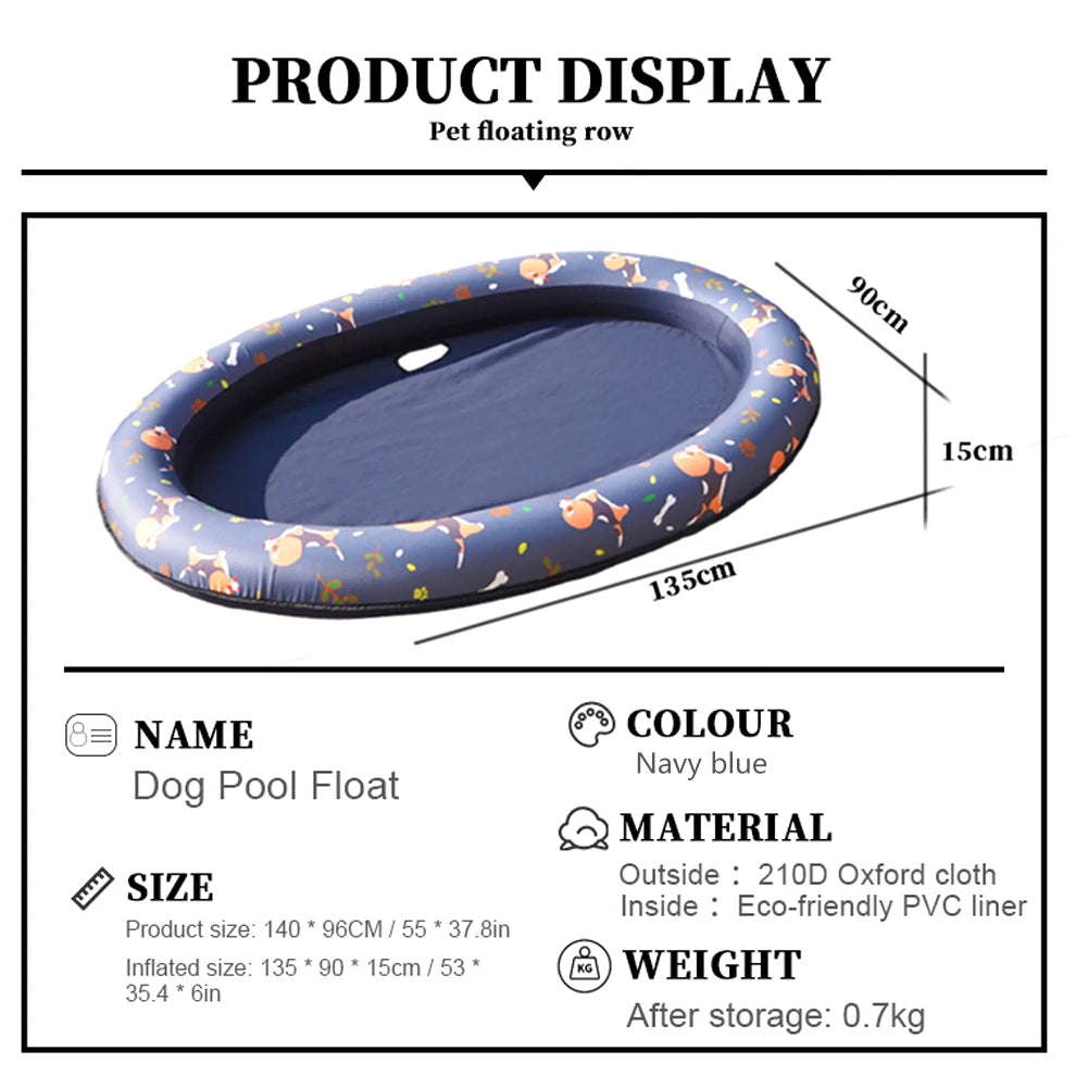 5、Iated size: about 135*90*15cm/53*35.4*6in, suitable for small, large dogs and other pets swimming in the pool.