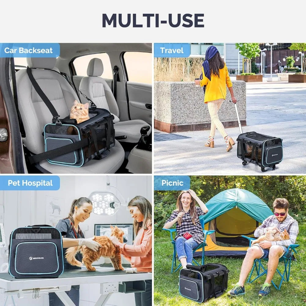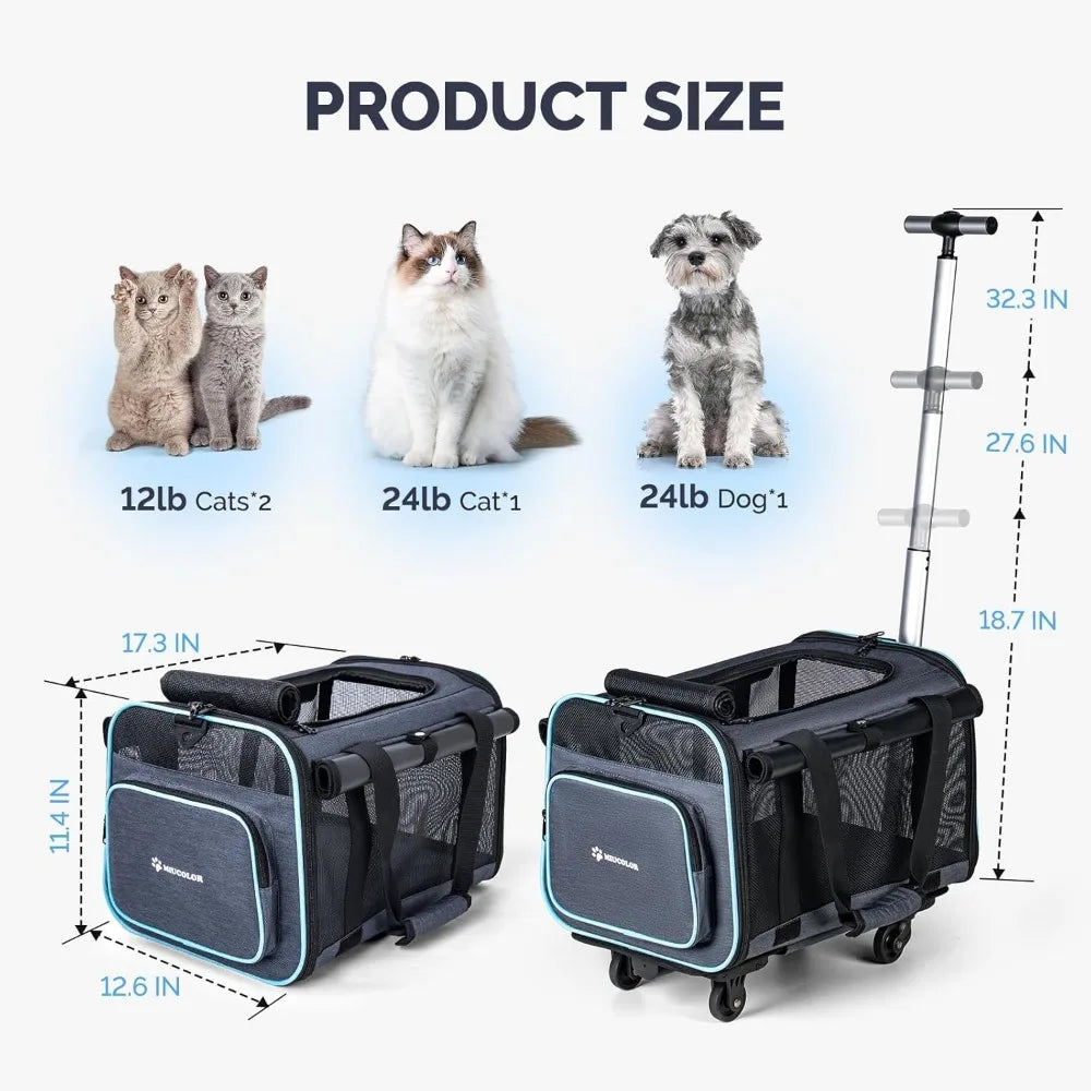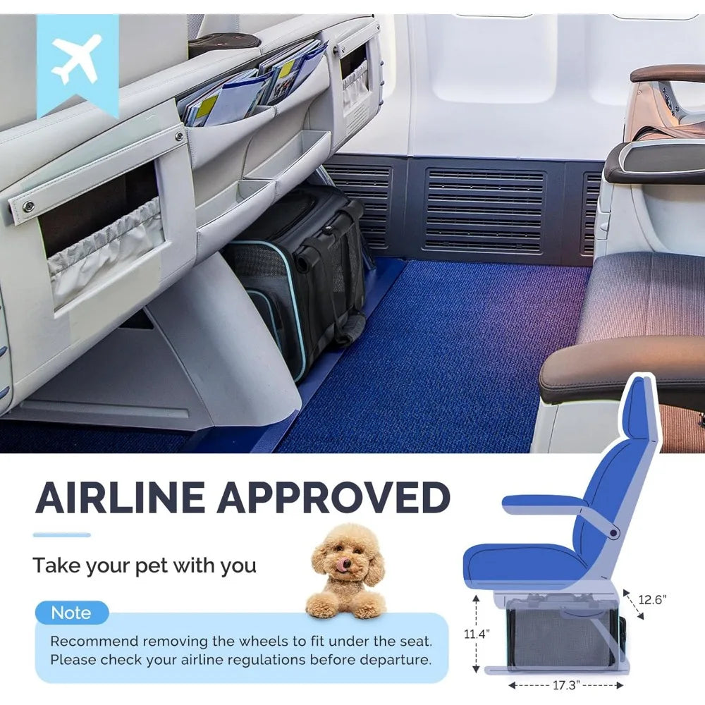 Pet Carrier with Wheels, Airline & TSA Approved, Cat/Dog Travel Soft Carrier Bag, Rolling Pet Backpack with Telescopic Handle