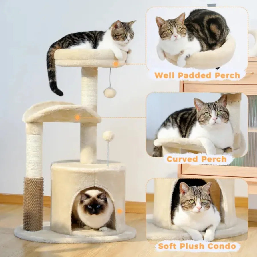 Small Cat Tree for Indoor Cats Medium Cat Tower with Interactive Cat Toy 32.7" Cat Condo with Self Groomer Brush Natural Cat Sc