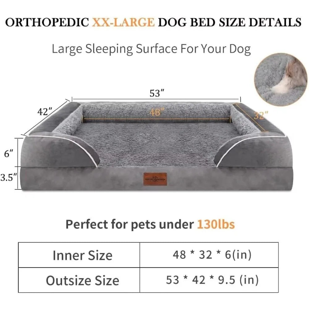 XXL Orthopedic Dog Bed for Extra Large Dogs, Waterproof Orthopedic Foam Dog Beds, Washable Dog Sofa Bed with Removable Cover & N